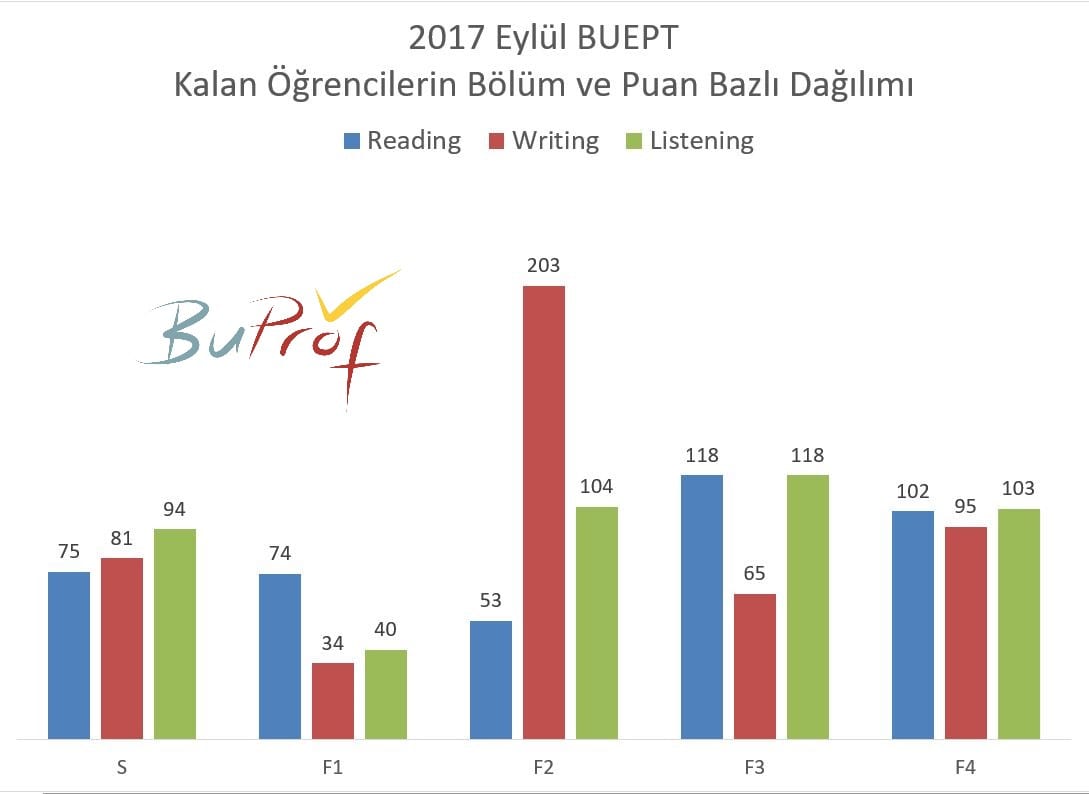 7 Eylül 2017 BUEPT sınavını geçen öğrencilerin not dağılımı şu şekilde
